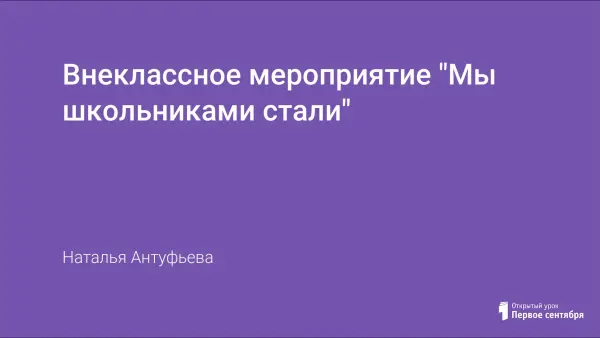 Во время внеклассного мероприятия дети рассказывают о первых днях в школе, о том, чему они научились за I четверть. Мероприятие направлено на развитие творческих способностей, умение держаться на сцене. Подготовительная работа и само мероприятие способствуют сплоченности школьного коллектива и родителей.