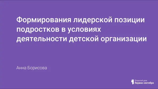 В данной статье рассматривается место детских общественных организаций в воспитательной системе общеобразовательных учреждений, раскрываются особенности формирования лидерской позиции подростков.