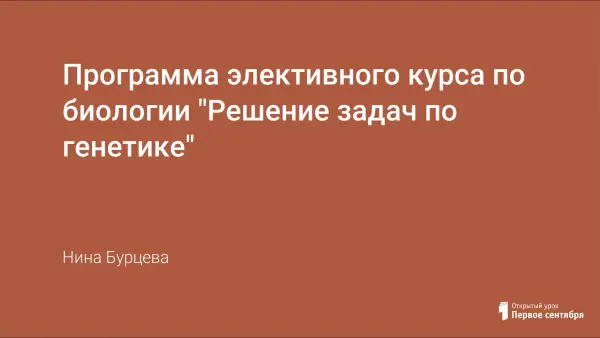 Элективный курс "Решение задач по генетике" рекомендован учащимся 9–11-х классов, обучающимся по учебникам цикла Н.И. Сонина. На занятиях учащиеся учатся решать, оформлять, анализировать генетические задачи.