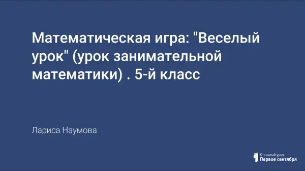 Мною разработан сценарий математической игры "Веселый урок" для 5-х классов с использованием элементов игры "Что? Где? Когда?". Данную игру можно проводить и в старших классах, заменив задачи более сложными.