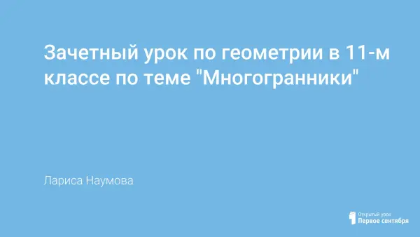 Представлен конспект зачетного урока по геометрии в 11-м классе по теме "Многогранники".