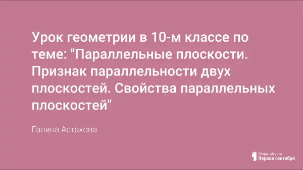 Данный урок является уроком изучения новой темы. Учащиеся знакомятся с определением, признаком и свойствами параллельных плоскостей и учатся применять полученные знания при решении задач.