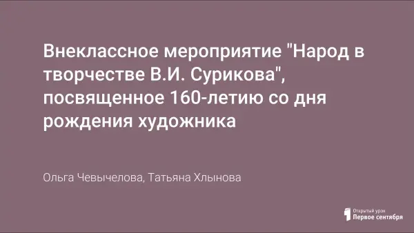 Внеклассное мероприятие "Народ в творчестве В.И. Сурикова", посвященное 160-летию со дня рождения художника