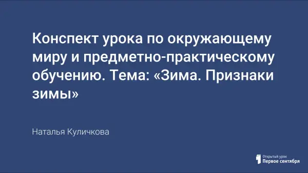 Цель урока: уточнить и расширить представления о зиме, её характерных признаках.
