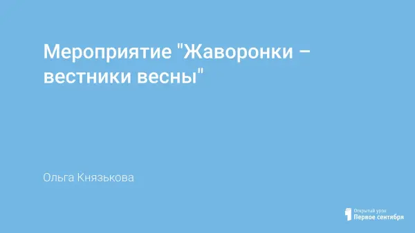 Мероприятие знакомит обучающихся с традиционным весенним праздником русского народа «Жаворонки», с истоками традиций в русской культуре как важнейшим механизмом сохранения и передачи базовых духовно-нравственных и социокультурных ценностей российских школьников.