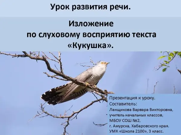 Урок развития речи. Тема: «Изложение "Кукушка"»