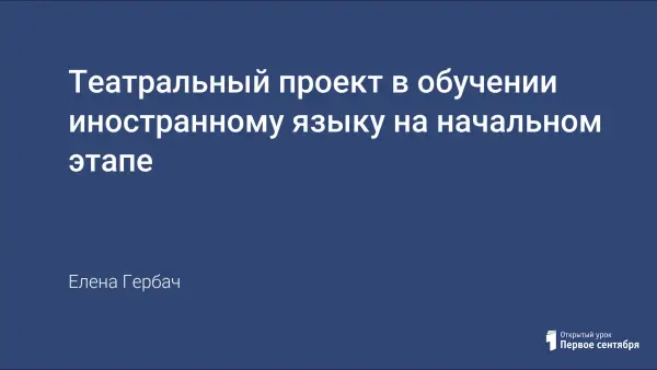 В статье "Театральный проект в обучении иностранному языку на начальном этапе" рассматриваются особенности и преимущества использования элементов театрального проекта при изучении иностранного языка на ранней ступени обучения. Автор обращает внимание на роль драматизации (театрального искусства) в создании условий для овладения языком, особенно в младшем школьном возрасте. В качестве примера в статье приводится конспект урока по теме "В мире сказок" по учебнику М.З. Биболетовой "Enjoy English I" с использованием элементов театральной постановки (драматизации).