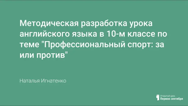 Цель урока: обобщение и систематизация умений и навыков на основе монологических и диалогических высказываний по теме «Спорт». Тип урока: урок обобщение по теме «Спорт» с использованием элементов технологии дебатов.