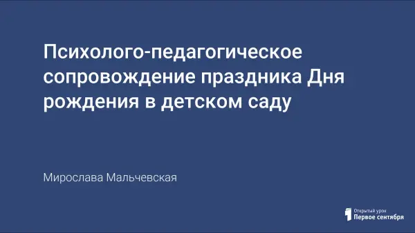 Главная психолого-педагогическая задача в организации Дня рождения - создать условия для самореализации и эмоционального благополучия конкретного ребенка.