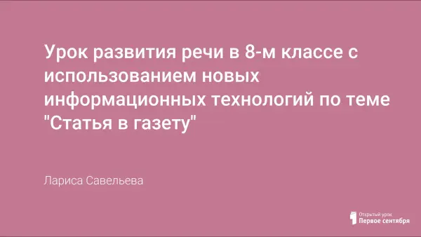 Урок развития речи в 8-м классе с использованием новых информационных технологий по теме "Статья в газету"