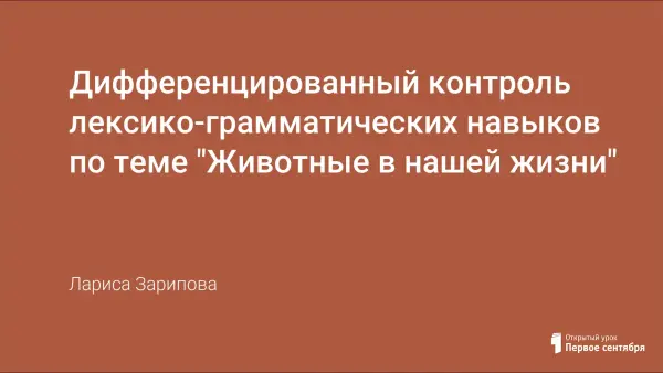 Цель контроля: проверить сформированность лексико-грамматических навыков по теме, учитывая дифференцированный подход к контролю изученной темы.