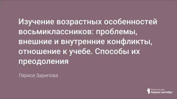 Подростковый возраст восьмиклассников рассматривается как этап развития личности, процесс перехода от зависимого, опекаемого детства, когда ребенок живет по особым правилам, установленным для него взрослыми, к самостоятельной жизни.