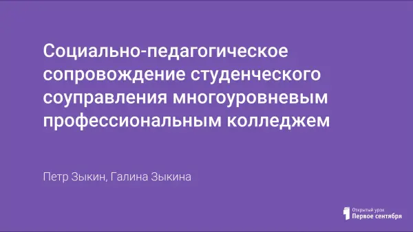 Социально-педагогическое сопровождение студенческого соуправления многоуровневым профессиональным колледжем