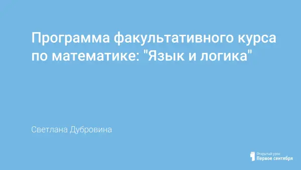 последовательно. Программа факультативного курса по математике "Язык и логика"