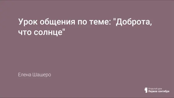 Данный урок рассчитан на детей 6–7 летнего возраста. Это урок-путешествие. Он нацелен на формирование представлений о добре, позволяет детям провести самооценку своей деятельности, учит замечать добрые поступки, а также видеть свои недостатки и пытаться их исправлять. Требуется предварительная подготовка для заучивания стихов и песен. Используемая наглядность помогает создать атмосферу доверительного разговора.