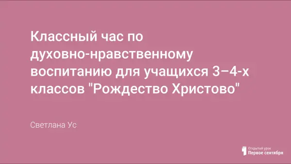 Классный час по духовно-нравственному воспитанию для учащихся 3–4-х классов. Приобщает учащихся к русским православным традициям. Знакомит с историей возникновения праздника Рождества Христова, воспитывает уважительное отношение к культурным ценностям русского народа.