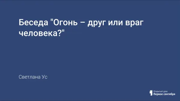 Занятие расширяет знания учащихся о пользе и вреде огня, о правилах пожарной безопасности, прививает навыки осторожного обращения с огнём, учит учащихся правильным действиям в случае возникновения пожара.