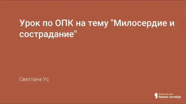 Цель урока: сформировать у учащихся представление о милосердии и сострадании. Задачи: усвоение понятий: ближний, милосердие, милостыня, сострадание; воспитывать чуткое и внимательное отношение к людям; развивать стремление совершать добрые поступки.