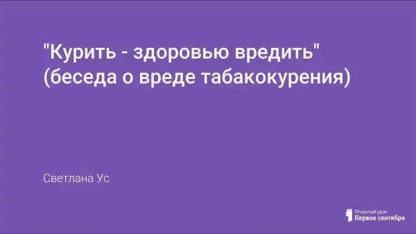 Цель классного часа: объяснить детям, что табакокурение – болезнь, вызывающая изменения в организме. Задачи: познакомить учащихся с историей распространения табака по планете; рассказать о вреде этого вещества; формировать привычку избегать табачного дыма; сформировать правила противостояния групповому давлению по принятию табака; познакомить со знаками: «Не курить», «Место для курения.