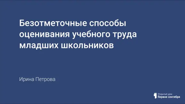 В работе представлены безотметочные способы оценивания учебной деятельности младших школьников. Система безотметочного оценивания основана на использовании игровых приемов и ситуаций. Эта система помогает даже самым слабым ученикам видеть результаты своего успешного труда и учиться без страха, в посильном индивидуальном темпе. При организации дифференцированной работы на уроке по данной системе затраты времени и сил учителя эргономичны.