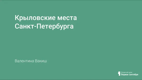 Урок-презентация в 7-м классе специальной (коррекционной) школы-интерната VIII вида. Обобщающий урок по творчеству великого русского баснописца построен в форме путешествия по местам Санкт-Петербурга, связанным с жизнью и творчеством И.А. Крылова.