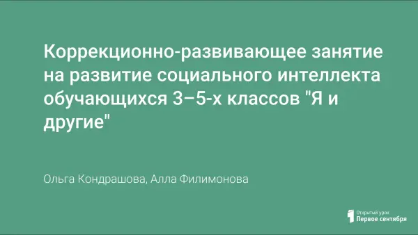 Коррекционно-развивающее занятие на развитие социального интеллекта обучающихся 3–5-х классов "Я и другие"