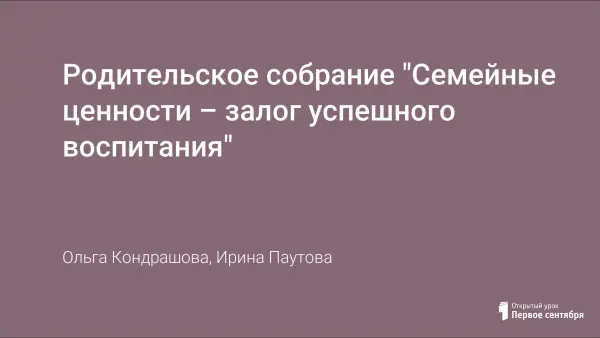 Собрание формирует у родителей представления о семейных ценностях в семьях.