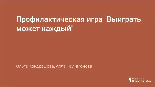 Авторская разработка предлагает новый вариант (форму) организации профилактической работы и пропаганды здорового образа жизни среди детей и подростков – это профилактическая игра в форме дискуссии, информирования, практикума. Для достижения целей и задач были подобраны упражнения по саморегуляции, тексты стихов, видеосюжеты, песня, выступление агитбригады. В работе использованы приемы, позволяющие повысить эффективность профилактической работы.