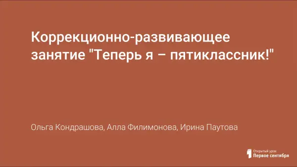 Коррекционно-развивающее занятие проводится с целью адаптации детей в средней школе. Занятие помогает каждому пятикласснику как можно легче и радостнее вступить в новый этап школьного обучения; поддерживает и развивает в детях интерес к знаниям; помогает им общаться с новыми одноклассниками и преподавателями.