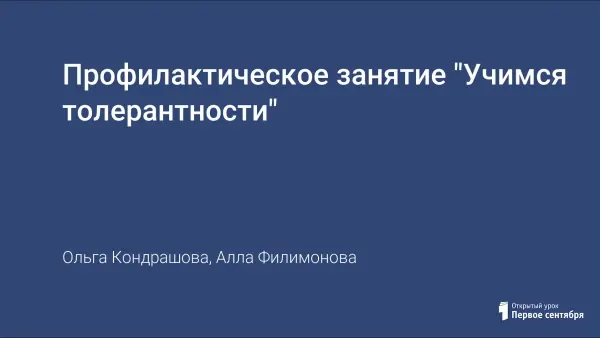 Цели урока: познакомить участников с основными чертами толерантной личности; дать возможность подросткам оценить степень своей толерантности. Занятие помогает участникам занятия осваивать навыки позитивного социального поведения; осознавать важность способности ладить с другими людьми; тренировать умение владеть своими эмоциями.