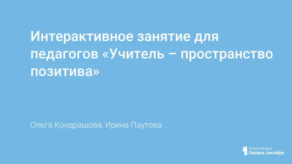 Цели занятия: формирование позитивного мышления у участников образования; активизация творческого потенциала и открытие новых ресурсов в педагоге для более продуктивной работы в сфере образования.