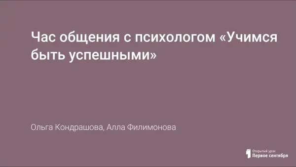 Цель занятия: укрепить веру детей в то, что они сами могут управлять своей жизнью. Разработка предлагает групповую работу, в ходе которой создаются условия для формирования у подростков стремления к самовоспитанию, развитию чувства ответственности за свои поступки и позитивного отношения к жизни. Занятие состоит из двух блоков: теоретического и практического. Ребята размышляют, анализируют, определяют: «Успех, что это? Как стать успешным человеком». Участники занятия учатся умению вести позитивный внутренний разговор о самом себе, воспитывая в себе способность радоваться успехам других. Кроме того, ребята получают важные рекомендации для успешной жизни: «Выигрываем мы или проигрываем – неважно. Проявляй лучшее, что в тебе есть».