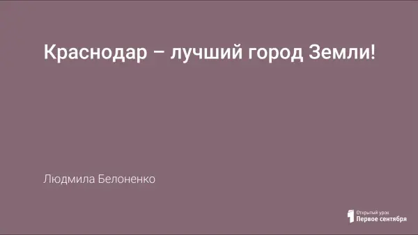 Каждый человек должен знать историю своей малой родины. Темой урока могут воспользоваться учащиеся краснодарских школ при изучении курса "Кубановедение", а также все, кого интересует история города Краснодара. Представлен город Екатеринодар от рождения до сегодняшних дней.