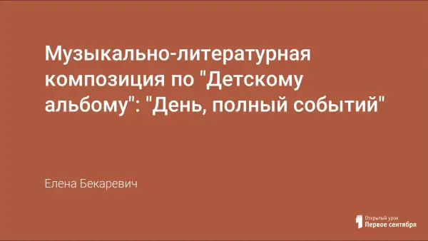 В данной работе представлена сценическая версия музыкально-литературной композиции по мотивам "Детского альбома" П.И Чайковского. Цель этого внеклассного мероприятия - приобщение детей младшего и среднего школьного возраста к русскому классическому наследию. Предлагаемый вниманию читателей сценарий - это творческий отчет работы педагогов и ребят сразу по нескольким учебным дисциплинам: музыка, хореография, изобразительное искусство, театр и народная культура.