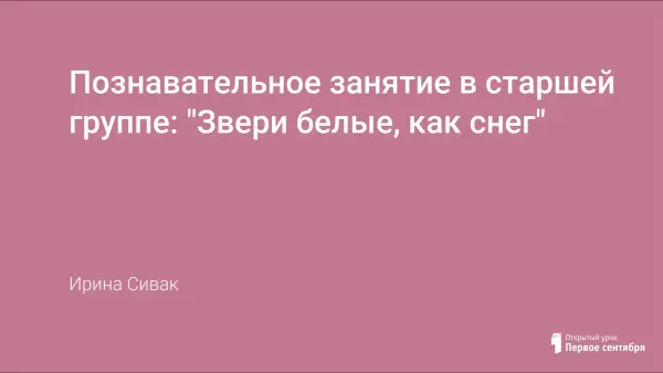 Познавательное занятие "Звери белые, как снег" для старших дошкольников, направлено на поддержку и развитие устойчивого интереса детей к животным, умение выделять характерные особенности их внешнего вида, способов передвижения, питания, приспособления, находить отличия и сходство данных животных.