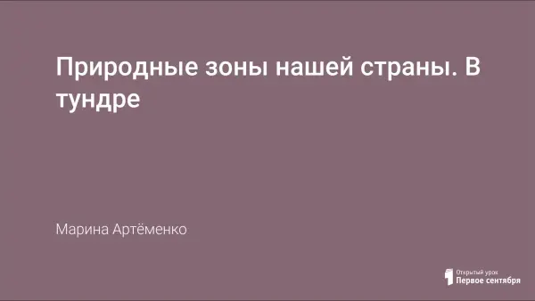 Урок проводился с детьми, обучающимися в системе КРО и имеющими нарушения речи. Цели и задача урока: познакомить с пейзажем природной зоны, ее климатом, растительностью и животным миром. Показать специфику тундровой зоны, взаимную приспособленность живых организмов, их зависимость от неживых компонентов и влияние на них. Формировать умение сравнивать объекты, устанавливать черты сходства и различия, выделять существенные признаки. Корректировать искаженные представления о природе и жизни.