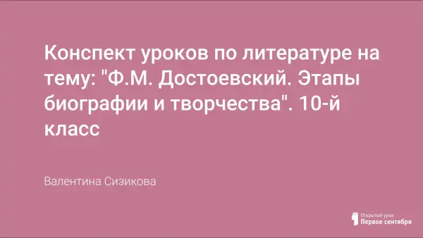 Урок по форме представляет собой мультимедийную экскурсию по этапам биографии и творчества писателя. На наш взгляд, эта форма уроков по данной теме позволяет наглядно, подробно, достоверно показать гениальную личность Достоевского, истоки его творчества, познакомить с мировоззрением писателя.