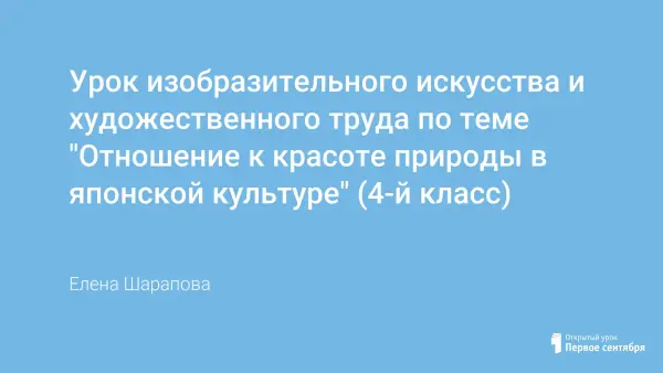 Обучение в 4-м классе строится на приобщении детей к миру искусства через познание многообразия культур народов Земли. На уроках изучения японской культуры учащиеся получают представление о характере архитектуры, ее тесной связи с природными условиями, и учатся видеть духовную красоту человека. Работа на уроке строится через изображение природы деталями, характерными для японских художников.
