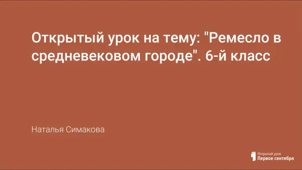 Открытый урок на тему: "Ремесло в средневековом городе". 6-й класс