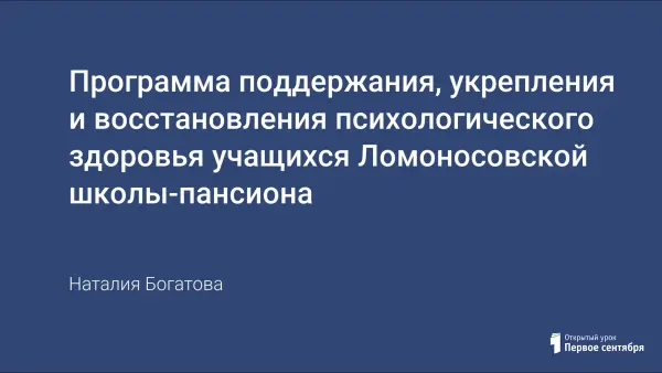 В ней рассмотрены основные цели, задачи и методы работы психолого-логопедической службы, необходимые для поддержания психологического здоровья учащихся.