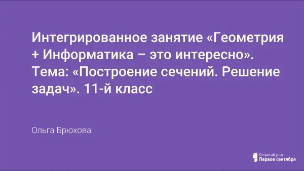 Данное занятие рекомендуется провести в компьютерном классе. В графическом редакторе, навыки работы с которым учащиеся приобрели на уроках информатики, учащиеся выполняют задания на построение многогранников, тел вращения, их сечений, используя все правила построения чертежей. Такие занятия позволяют выработать практический навык построения фигур. Целью таких занятий является создание условий для учащихся для развития стереометрического воображения, необходимого для решения задач на комбинацию многогранников и тел вращения, для решения задач на построение сечения фигур. На этом занятии необходимо разобрать и выполнить построение сечений многогранников и тел вращения. Каждому ученику на занятии предлагается построить сечение многогранника и фигуры вращения.