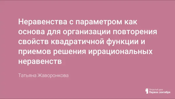 В статье представленные решения задач направлены на обобщение умений и навыков учащихся при работе с параметрами.