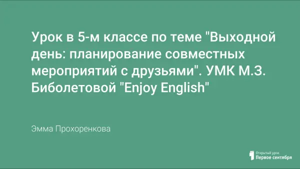 Урок продолжает тему "Выходной день", совершенствует лексический, грамматический материал, изучаемый во втором юните, развивает аудитивные навыки.