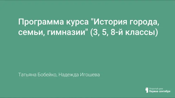 Программа курса "История города, семьи, гимназии" (3, 5, 8-й классы)
