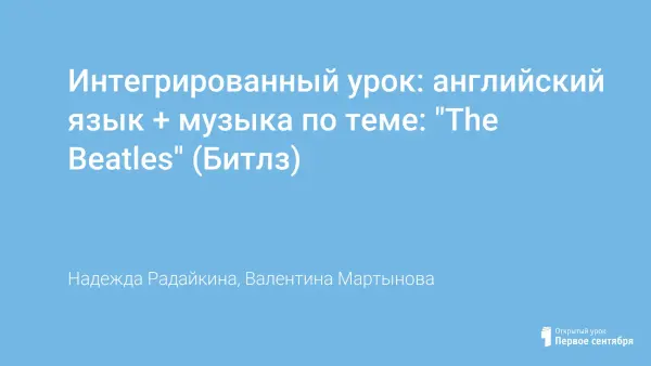 Целью урока является знакомство учащихся с творчеством группы "Битлз", развитие сплоченности коллектива через совместное исполнение песен и стихов, через совместную исследовательскую деятельность; развитие произносительных навыков и навыков аудирования; развитие музыкального слуха, закрепление правил фразового ударения, особенности ритма английского языка. Развитие у учащихся чувства языка.