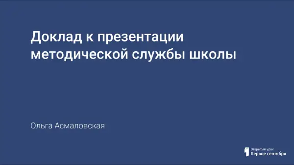 В докладе представлено обобщение опыта работы методической службы школы и его презентация на городском педагогическом форуме.