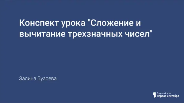Цели урока: сформировать умение складывать и вычитать трёхзначные числа без перехода через разряд, записывать операции сложения и вычитания без перехода через разряд столбиком; тренировать умения анализировать и решать задачи на нахождение части, решать уравнения.