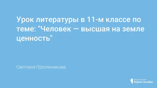 Урок литературы в 11-м классе по теме "Человек – высшая на земле ценность" построен на работе учащихся с текстами и направлен на развитие умений проводить лингвистическое наблюдение над языковыми особенностями, аргументировано высказывать собственную точку зрения.