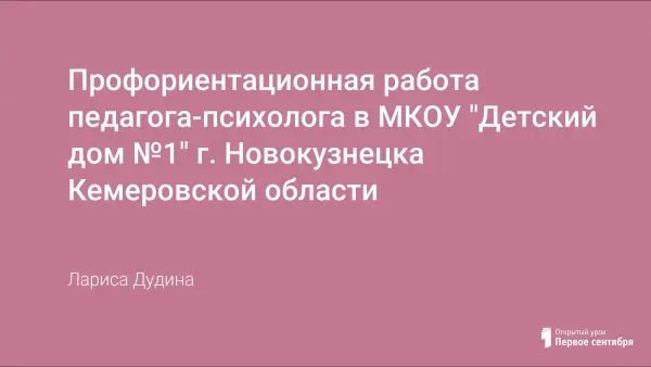 Выбор профессии - важнейшее решение в жизни каждого человека и задача педагога-психолога помочь подросткам сделать правильный выбор. В статье описывается система профориентационной работы, проводимой педагогом-психологом, в МКОУ "Детский дом №1" г. Новокузнецка.