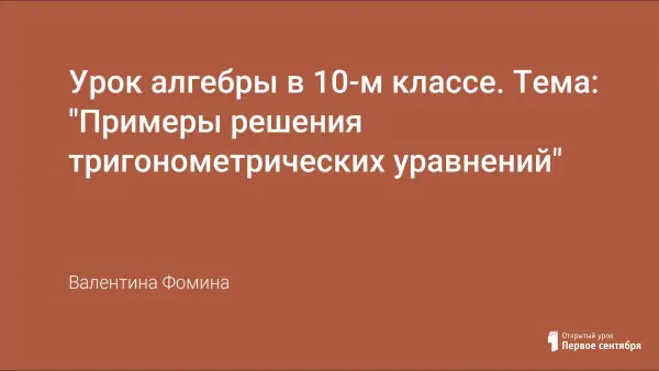 Урок алгебры закрепляет решение простейших тригонометрических уравнений в нестандартной форме, знакомит с решением уравнений, сводящихся к квадратным, развивает умение сравнивать, выявлять закономерности, обобщать.